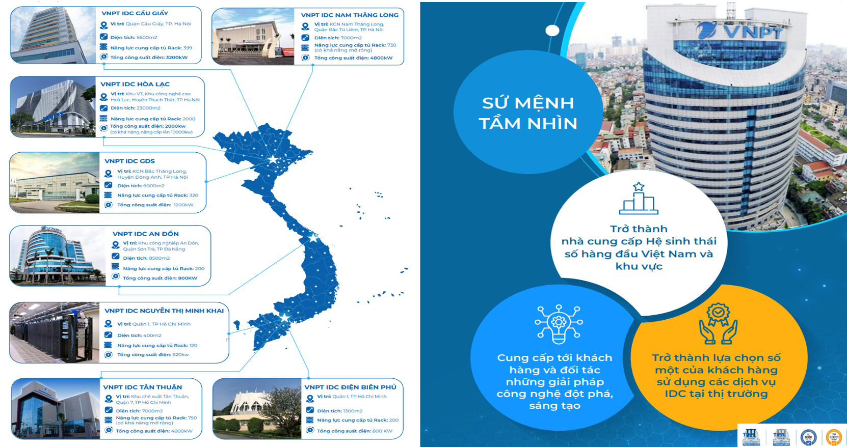Theo đó, VNPT đã đẩy mạnh hệ thống các TTDL. Ngày 25/10/2023, VNPT đã khai trương TTDL thứ 8 tại Khu công nghệ cao Hòa Lạc với các công nghệ hiện đại nhất, đáp ứng đầy đủ tiêu chuẩn kỹ thuật quốc tế. TTDL này đạt chứng chỉ Uptime Tier III cho hạng mục thiết kế (TCDD), xây dựng lắp đặt (TCCF) và sắp tới là chứng chỉ về vận hành (TCOS); Có khả năng kết nối trung bình 2 Gbps/rack đối với kết nối trong nước và 0,5 Gbps/rack với kết nối mạng quốc tế.
